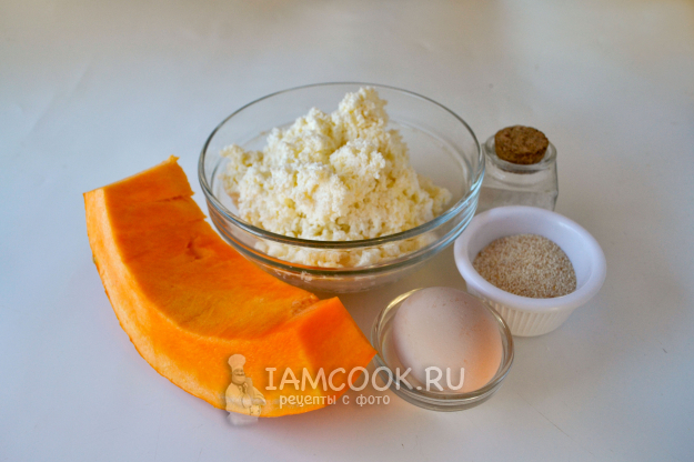 Соберите продукты для приготовления сырников с тыквой в аэрогриле.