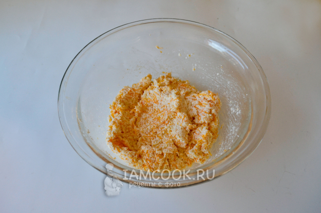 Тыкву очистите от кожуры и семечек, натрите на мелкой терке. Если тыква очень сочная, то руками отожмите из нее сок.