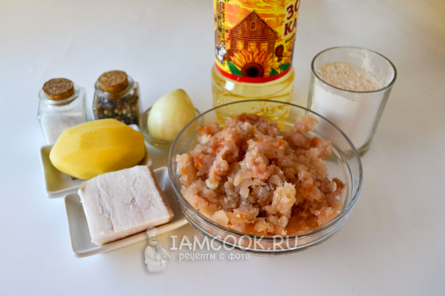 Соберите продукты для приготовления мантов из щуки (со щучьим фаршем).