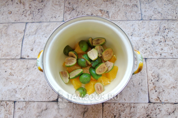 Соберите ингредиенты для приготовления компота из фейхоа и апельсина.