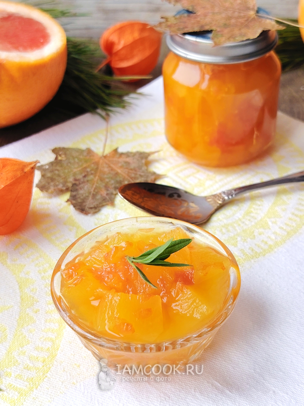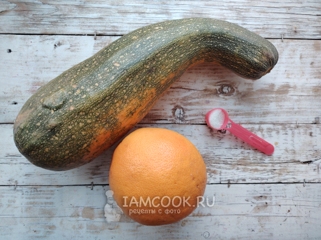 Собрать по списку продукты для варенья из кабачков и грейпфрута. Вес указан уже очищенных фруктов и овощей (без корочек и семян). Для такого варенья можно использовать и переросшие кабачки.