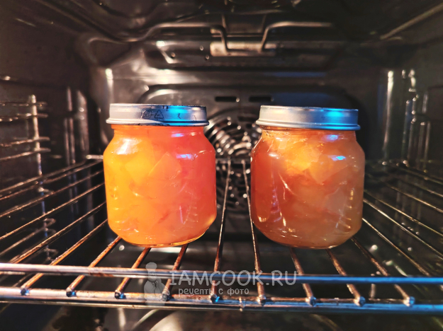 Простерилизовать варенье дополнительно в духовом шкафу при температуре 150 градусов. Баночки объемом 120 мл достаточно подержать в духовке около 10 минут. Банки ставятся в холодную духовку, а после этого выставляется температурный режим.