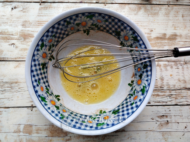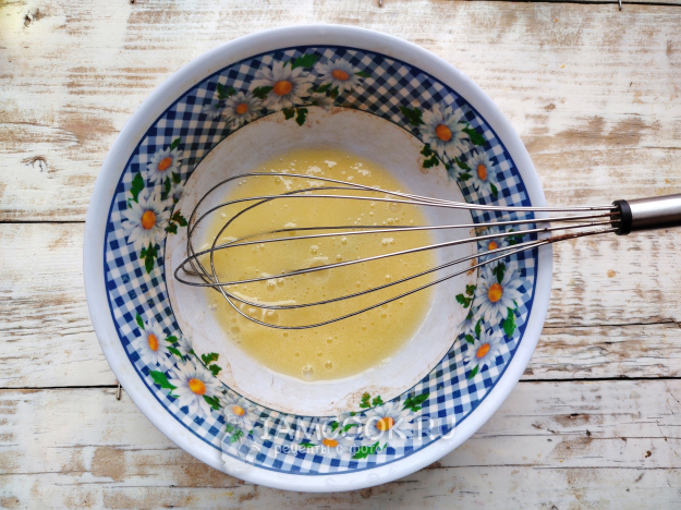 Замесить тесто. В миску вбить яйцо, добавить щепотку соли, венчиком размешать смесь до однородности.