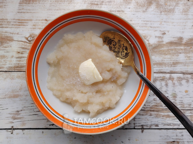 Добавить в пюре сливочное масло, соль, перец. Перемешать.
