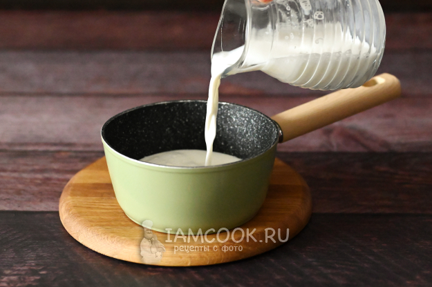 Влейте в ковш молоко и поставьте на плиту, дождитесь закипания.