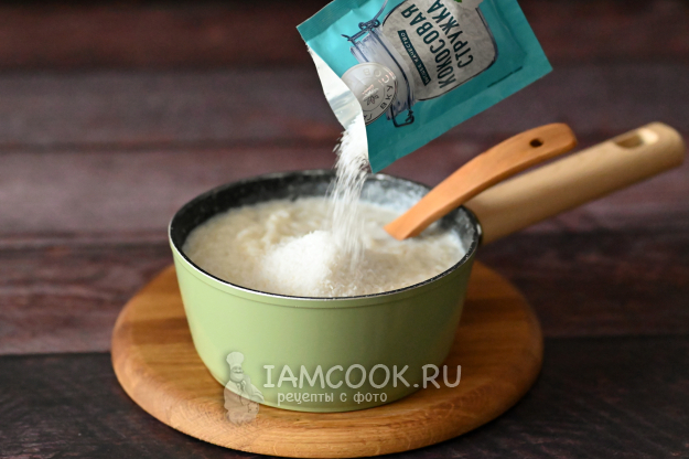 В закипевшее молоко всыпьте рис (можете его промыть предварительно, если вы сторонник промывания круп).