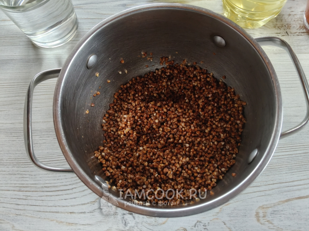 Переложить в кастрюлю, поставить на огонь, подсушить, помешивая.