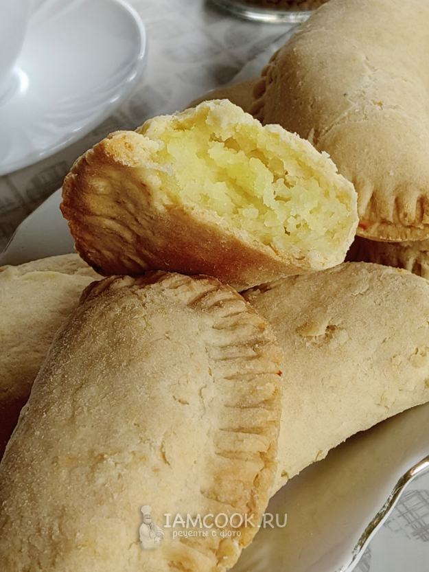 Пирожки с картошкой из песочного теста выпекать 20-25 минут при температуре 180 градусов.