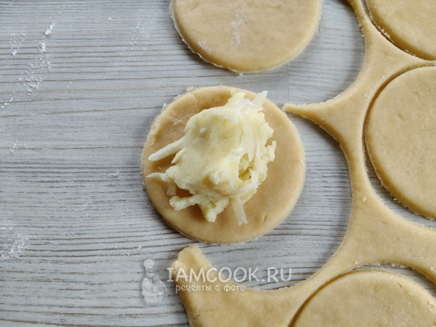 В центр кружочка положить ложку начинки.