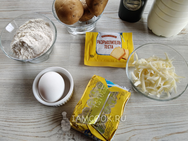 Для пирожков с картошкой из песочного теста понадобятся такие продукты.