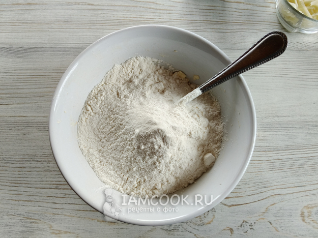 Добавить муку и разрыхлитель.