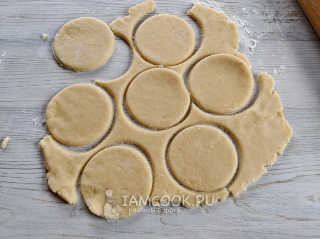 Затем раскатать скалкой и нарезать любым стаканом кружочки.