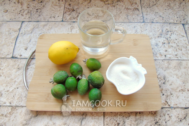 Соберите ингредиенты для приготовления компота из фейхоа с лимоном.