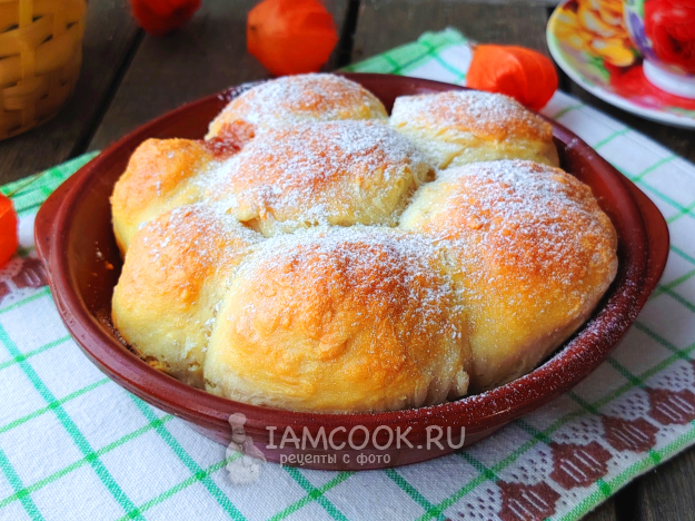 Выложить булочки в смазанную маслом форму. Смазать их сверху взбитым яйцом. Оставить на 15 минут в духовке, включенной на 35 градусов, чтобы булочки еще немного подросли. Выпекать разборник с конфетами из дрожжевого теста при 180 градусах около получаса.