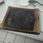 Выпекайте в предварительно разогретой духовке при температуре 180°C примерно 15-20 минут, до золотистого цвета. Выньте и сразу же нарежьте на квадраты.