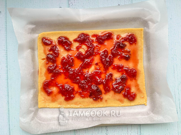 Размажьте по раскатанному тесту варенье.