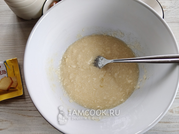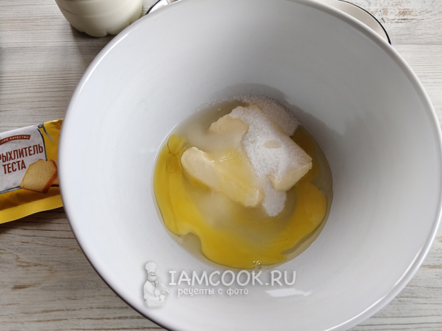 Мягкое масло, сахар, соль и яйцо соединить в миске.