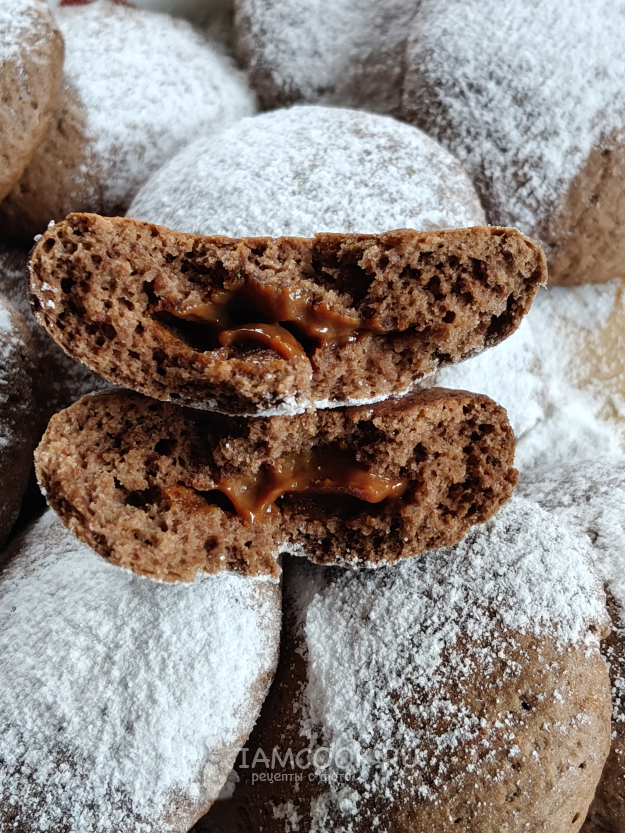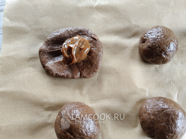 Шоколадное печенье с вареной сгущенкой выпекать при температуре 180 градусов. У меня ушло 15 минут.