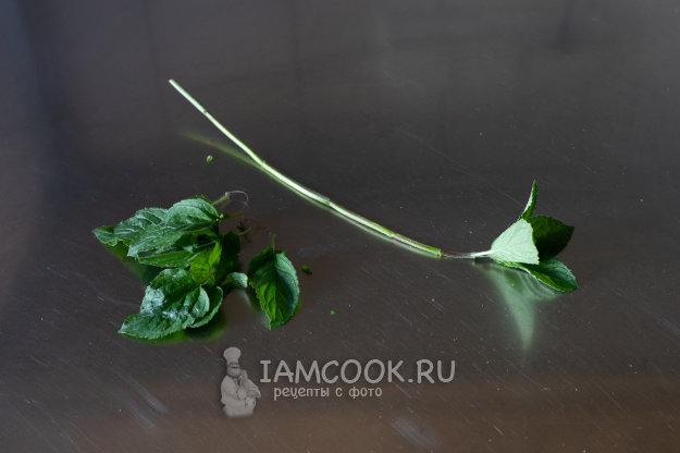 Отделим листья мяты от жестких веток. Для этого держим ветку за верх и сжатыми пальцами проводим от верхушки к основанию. В самом верху стебель обычно бывает мягким, ту часть отщипываем и пускаем в ход полностью.