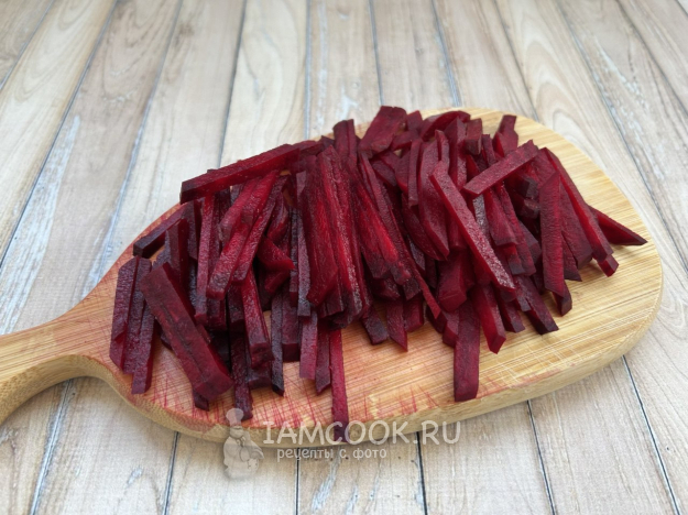 Добавьте нарезанную свеклу, уксус и сахар. Варите еще 7-10 минут.
