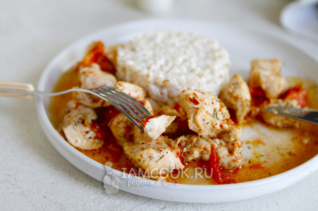 Для этого блюда можно взять как бедро, так и грудку тушки. Я готовила из куриного филе. Даже несмотря на то, что эта часть курицы, в отличие от бедра, более диетической и суше, по этому рецепту грудка получается очень сочной.