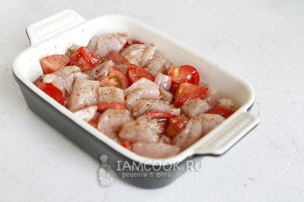 Соберите все продукты по списку и приступим к приготовлению курицы кусочками в духовке с помидорами.