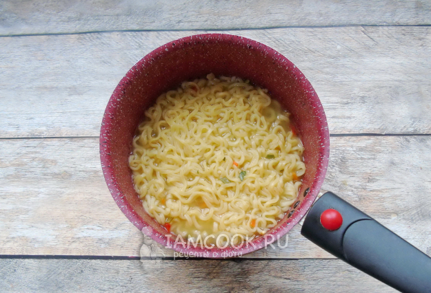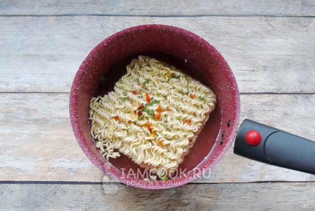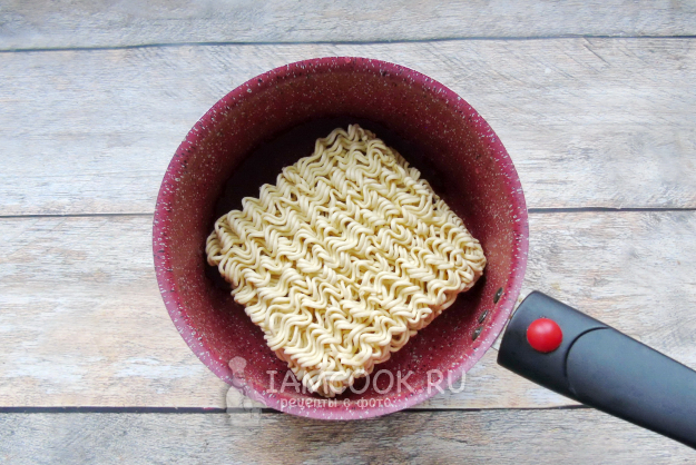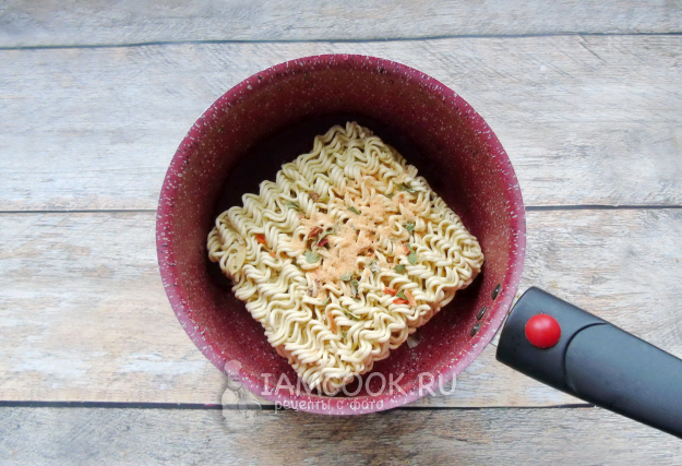 Залейте лапшу со специями водой.