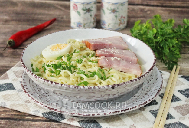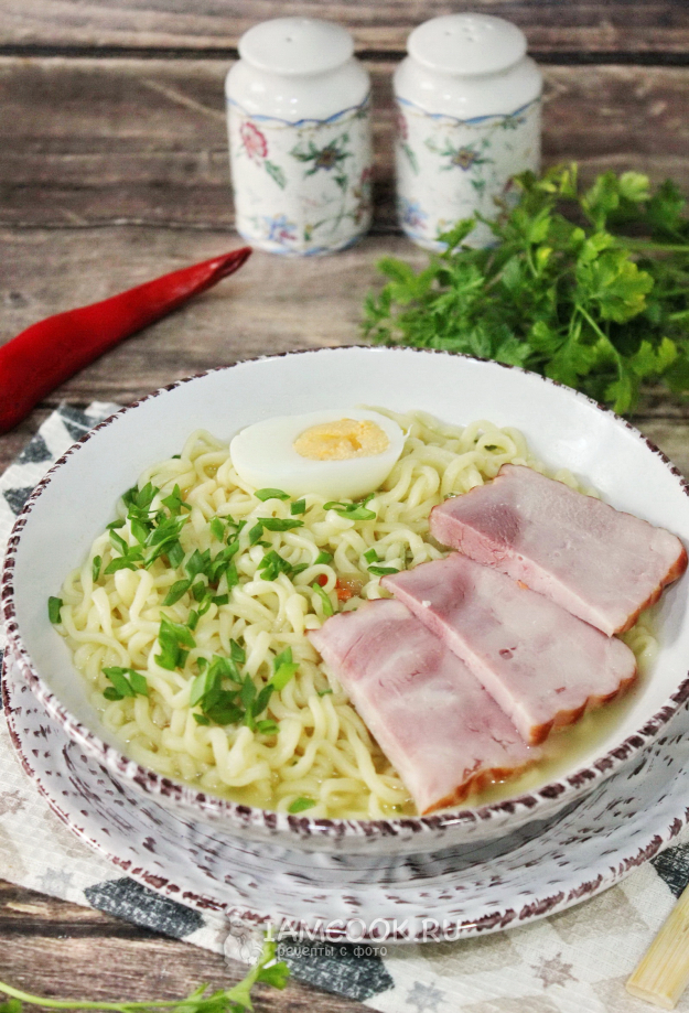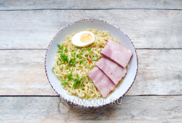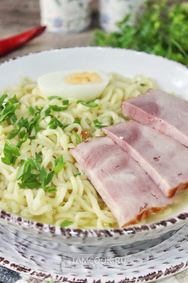 Рамен с ветчиной готов.