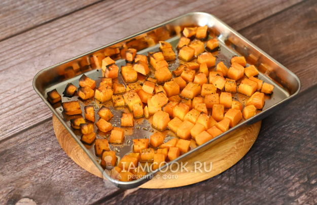 Тыква тоже запеклась, кубики стали мягкими и местами даже подрумянились.