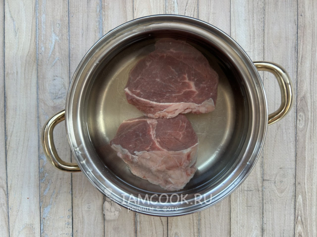 Мясо промойте, залейте холодной водой, посолите и варите на среднем огне 2-2,5 часа.