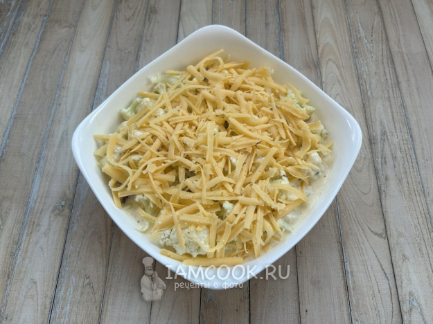 Твердый сыр натрите на крупной терке. Посыпьте сверху. Отправьте говядину с цветной капустой в духовку для запекания на 30 минут при температуре 180 градусов.
