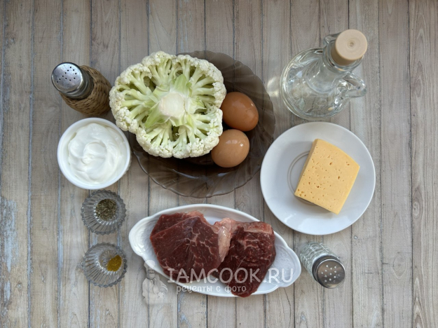 Соберите по списку все необходимые ингредиенты для приготовления говядины с цветной капустой в духовке.