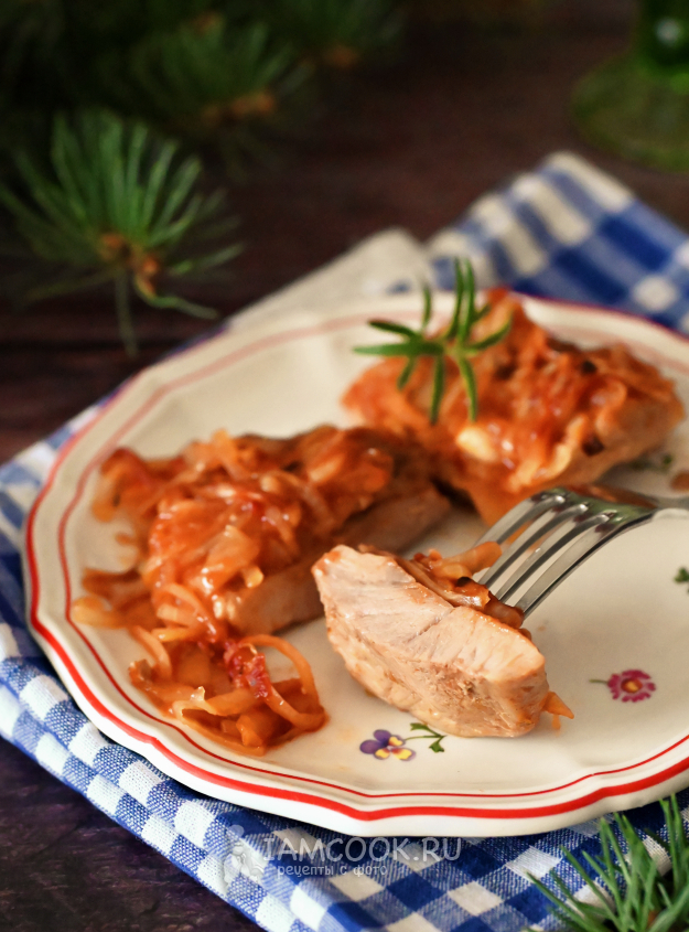 Что касается мяса, то я в таком варианте делаю буквально всё! Сегодня взяла кусок свиной лопатки. А за всю свою жизнь запекала в кетчупе с луком и рёбрышки, и стейки индейки, и куриное филе, и даже баранину. Не помню, делала ли говядину, но скорее всего делала.