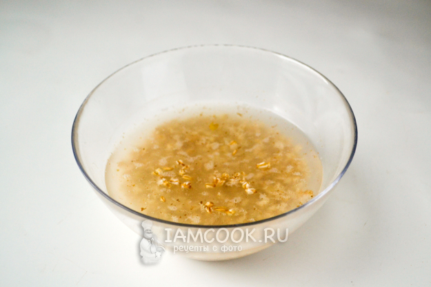 Овсяные хлопья залейте холодной кипяченой водой и оставьте на 2-3 часа, можно дольше. Я планировала приготовить кашу на завтрак, поэтому хлопья залила вечером на ночь.