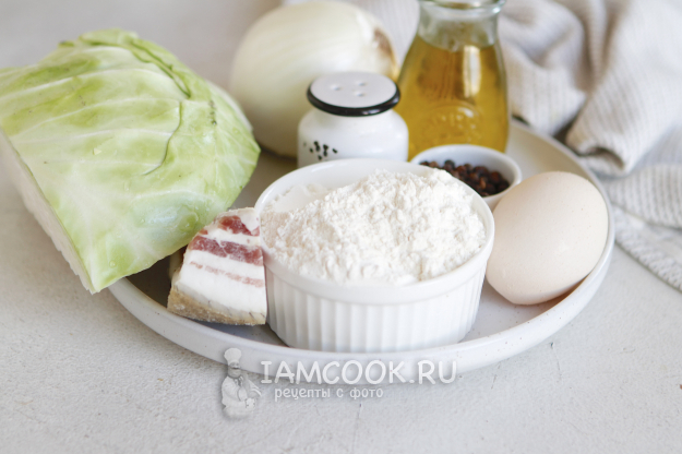 Соберите все продукты по списку и приступим к приготовлению вареников с салом и свежей капустой.