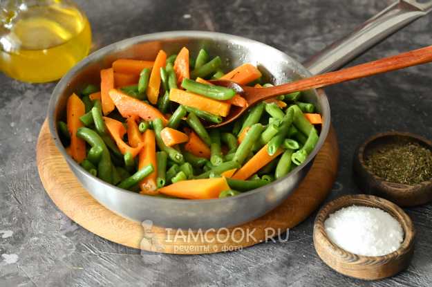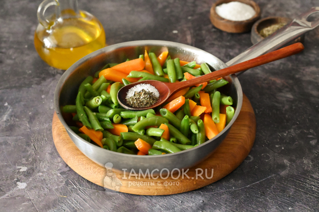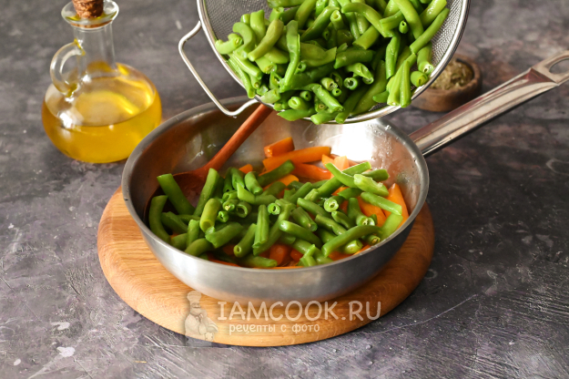 Затем добавьте в сковороду стручковую фасоль.