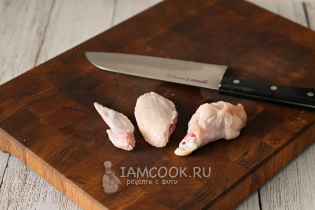 Для этого блюда крылья нужно разрезать на три части. Крайняя фаланга нам не нужна, оставьте её для бульона.