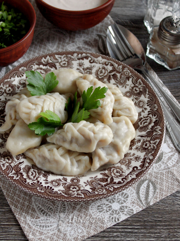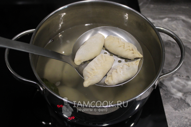 Варите бёриги, забрасывая их по несколько штук в закипевшую воду, каждый раз перемешивая, чтобы не слиплись. После следующего закипания и всплывания заготовок установите средний огонь и варите не менее пяти минут. Время зависит от толщины теста и количества начинки из баранины.
