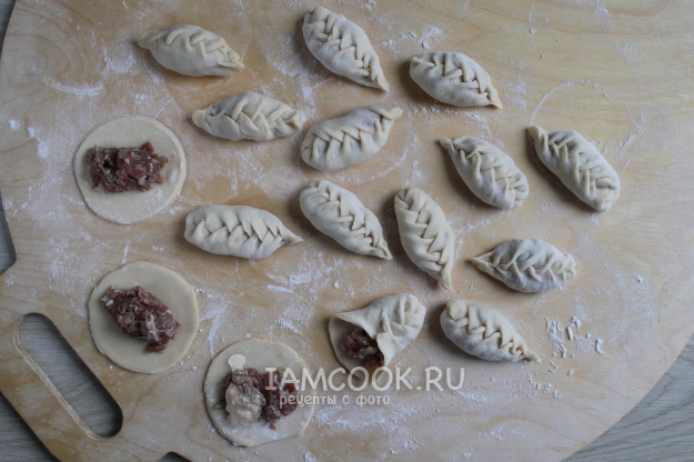 Про тесто. Оно обычное – пельменное, но есть такой момент. Из более плотного теста бёриги лучше держат форму, а из более мягкого легче слепить герметичный защип косичкой. Если нет курдючного жира, то берите жирную баранину. Для сочной начинки с бульончиком, в принципе, должно хватить лука, но можно дополнительно добавить в фарш ледяную воду или бульон.