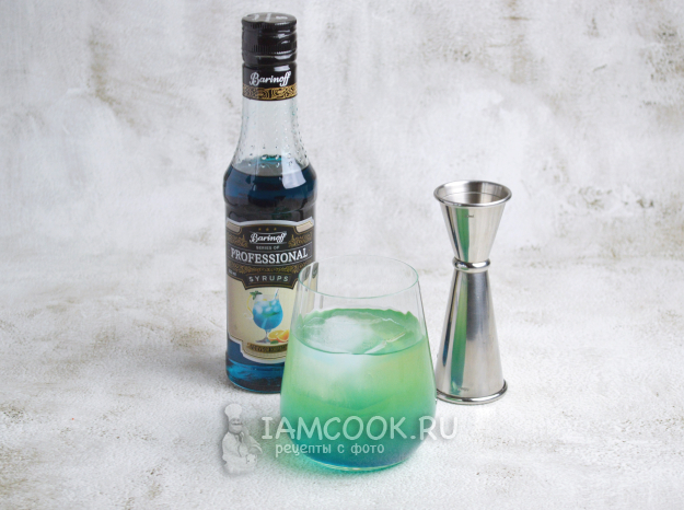 Добавить ананасовый сок и сироп. Хорошо перемешать барной ложкой.