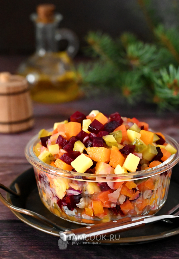 Сейчас идёт рождественский Пост - возможно, такой вариант винегрета пригодится постящимся. А вообще, раньше, в моём советском детстве, винегрет даже на праздничный стол готовили (но в праздничный вариант добавлялся зелёный горошек).