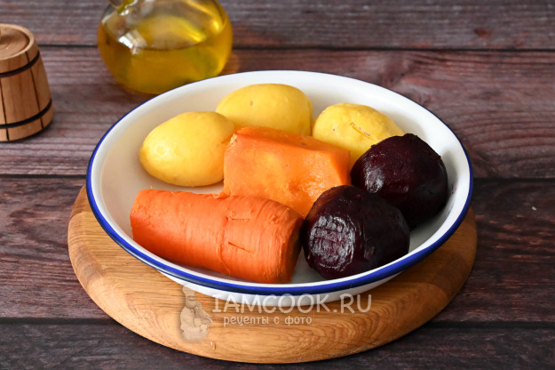 Вес овощей в ингредиентах указан в сыром виде. Но количество и пропорции на самом деле зависят от вашего вкуса. Да и вообще, вы правда взвешиваете овощи, когда готовите винегрет? Положа руку на сердце, все готовят "на глаз", плюс-минус прикидывая по виду - сколько и чего.
