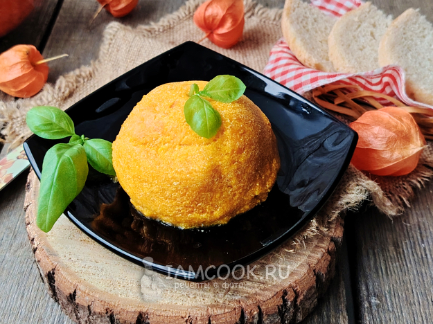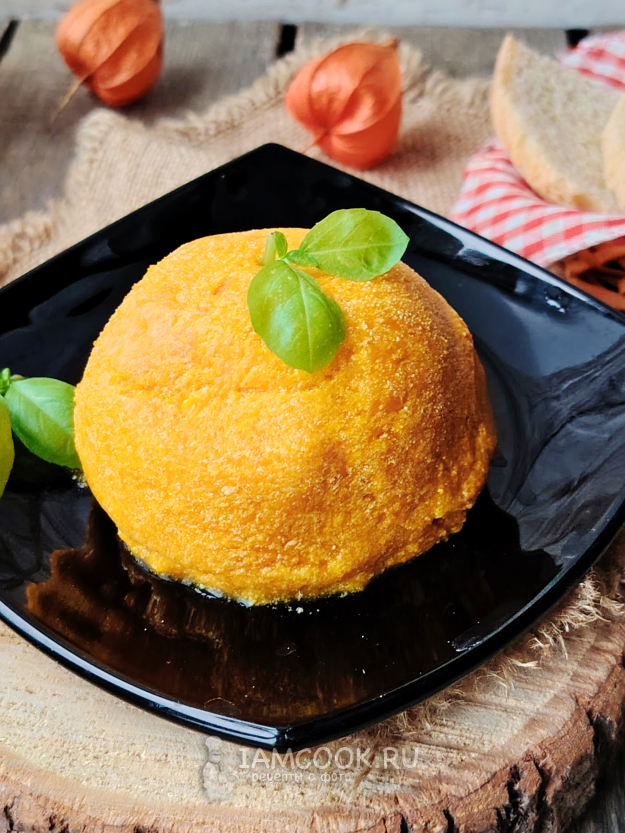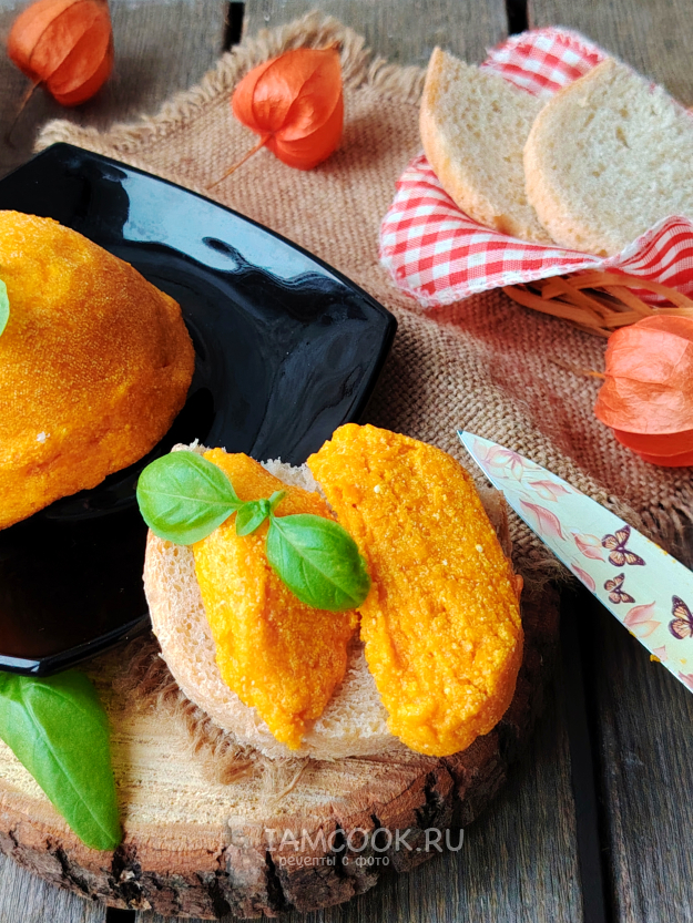 Подать тыквенный сыр к столу, например, с белым хлебом и зеленью базилика. Приятного аппетита!