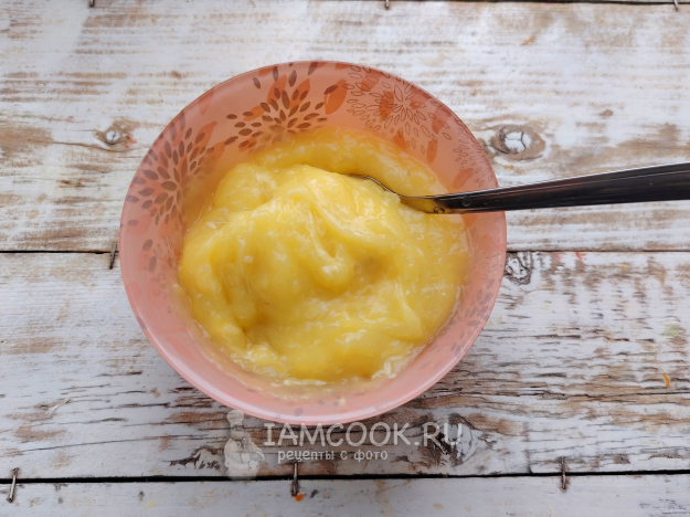 Соединить в миске слегка остывшее пюре с сыром, перемешать.