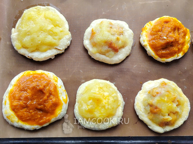 Смазать заготовки взбитым яйцом. Для сочности можно в центр влить немного растопленного сливочного масла. Выпекать шаньги с картошкой и сыром при температуре 180 градусов около 35 минут.