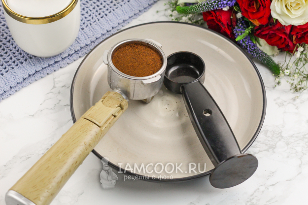 Заварите молотый кофе в кофеварке. Если будете использовать джезву, то влейте 80-100 мл горячей воды и сварите напиток до появления пены. По желанию можно приготовить и растворимый кофе, если вы не пьете заварной молотый.