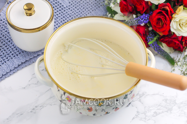 Поместите емкость на плиту и прогрейте ее содержимое до 80 градусов, помешивая венчиком, чтобы сыр как следует растворился. До кипения не доводите - сливки могут свернуться. Выключите нагрев и займитесь кофе.