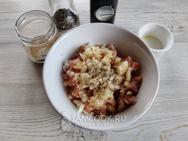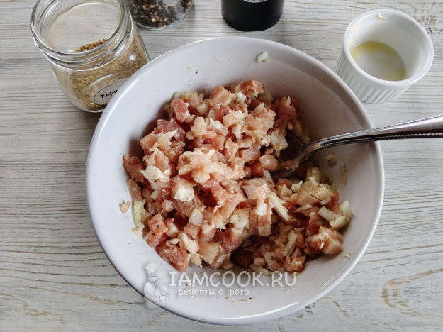 Добавить в начинку растопленное масло, соль, перец и кориандр по вкусу.