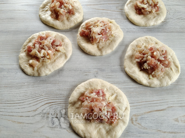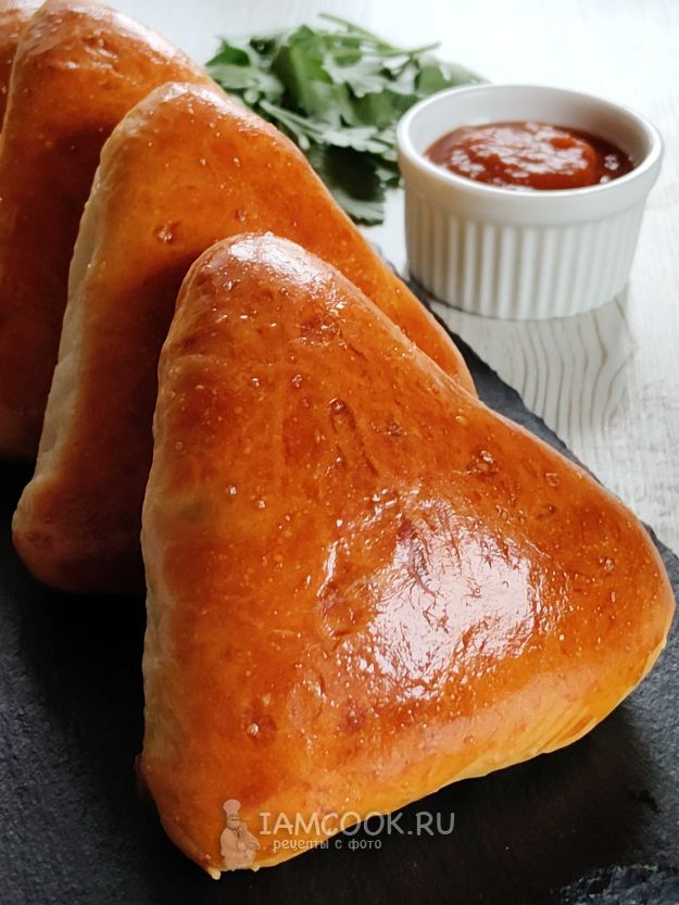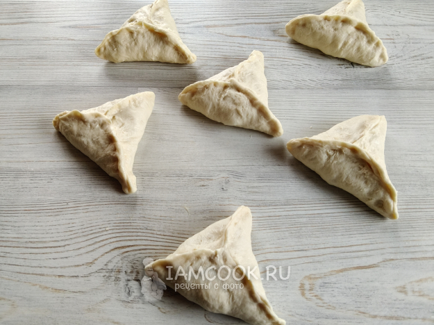Выпекать самсу с мясом из дрожжевого теста при 170 градусах 20 минут или до румяного состояния.