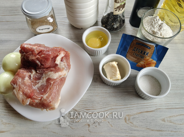Самсу с мясом из дрожжевого теста готовить будем из такого набора продуктов.